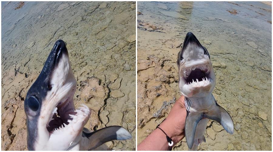 Σύμφωνα με τον άνδρα που τον εντόπισε, Mihail Gorano, ο οποίος ανήρτησε και τις σχετικές φωτογραφίες, ο καρχαρίας είχε εγκλωβιστεί στα βράχια και τον βοήθησε να απεγκλωβιστεί και να επιστρέψει στη θάλασσα.