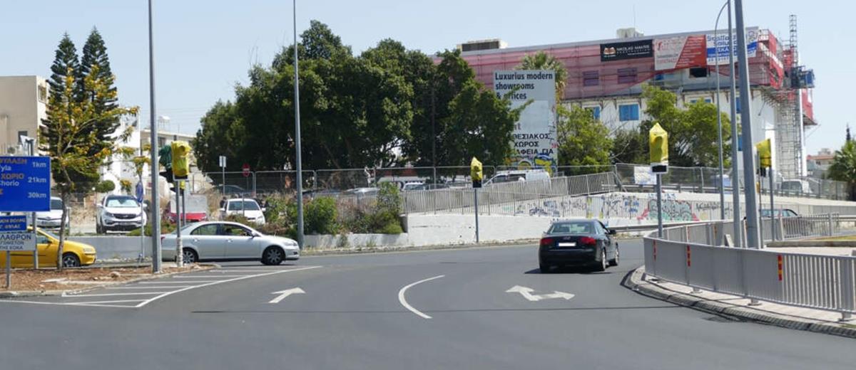 Νεαροί έβαλαν φωτιά στα έξυπνα φώτα, στον κυκλικό κόμβο Αγίας Φυλάξεως στη Λεμεσό.
