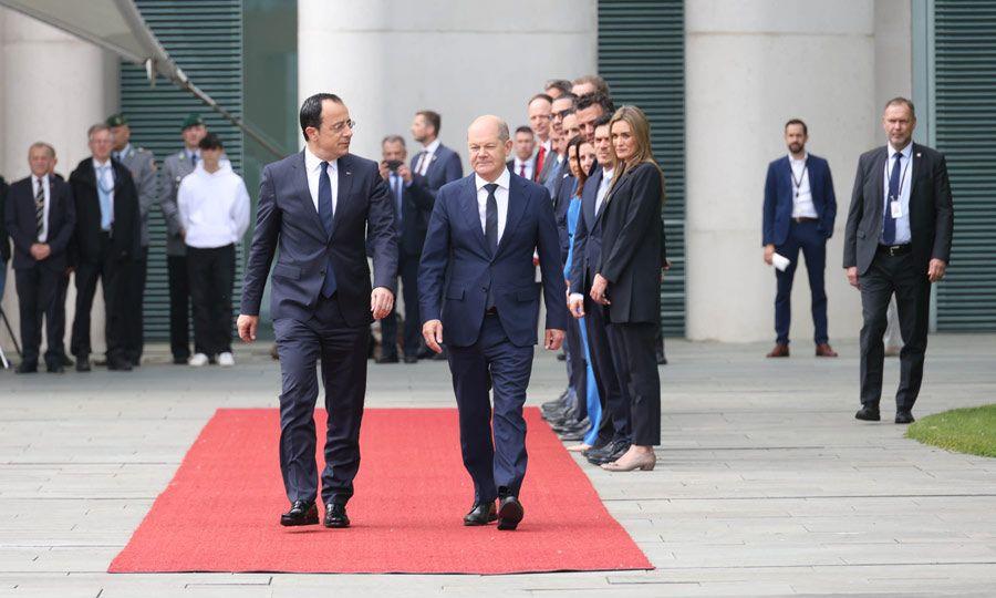 Αναφερόμενος στην πρόσφατη επίσκεψη του Προέδρου της Δημοκρατίας, Νίκου Χριστοδουλίδη, στη γερμανική πρωτεύουσα, είπε πως «το Κυπριακό είναι ένα θέμα. Την περασμένη εβδομάδα ήταν εδώ ο Κύπριος Πρόεδρος Νίκος Χριστοδουλίδης και αποτέλεσε ένα από τα θέματα που συζητήθηκαν. Υπάρχουν ασφαλώς πολλά διμερή θέματα μεταξύ της Ελλάδας και της Τουρκίας, τα οποία προσπαθούμε να προωθήσουμε εποικοδομητικά».
