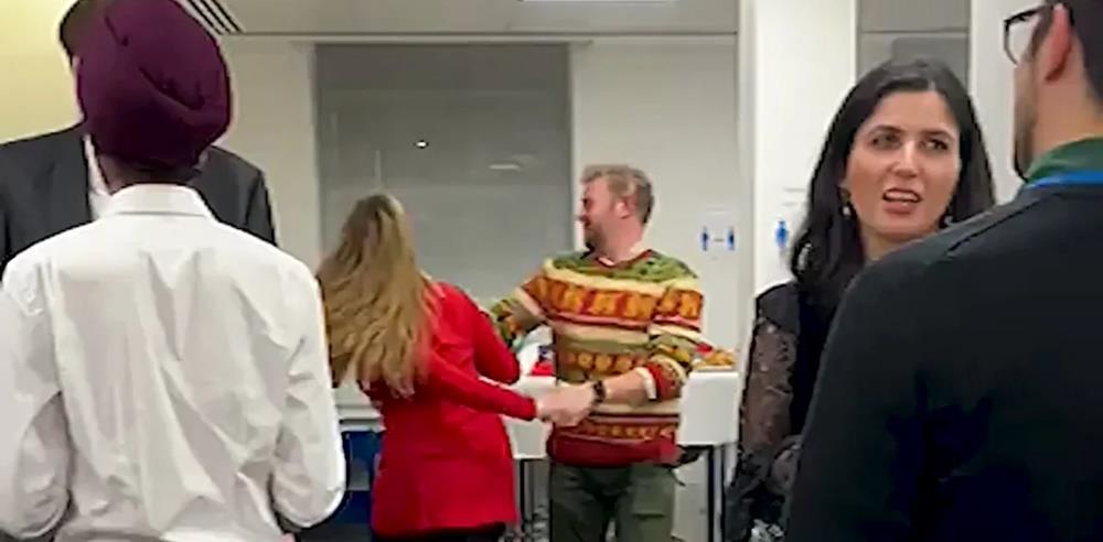 Το βίντεο-βόμβα αποκαλύπτει πώς οι αξιωματούχοι αστειεύονταν για το χριστουγεννιάτικο γλέντι που έκαναν παραβιάζοντας τους κανόνες. Δύο χορευτές στροβιλίζονται μάλιστα μπροστά από μια πινακίδα που έγραφε «Παρακαλώ τηρείτε τις αποστάσεις». Στον χώρο υπήρχε και καρόκε.
