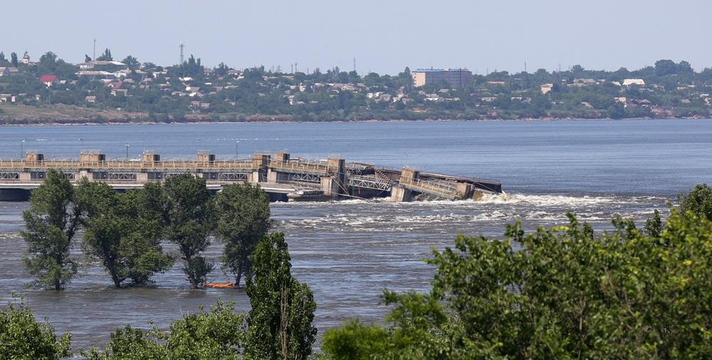 Η Ουκρανία κατηγορεί τη Ρωσία ότι ανατίναξε το σοβιετικής κατασκευής φράγμα που τελεί υπό ρωσικό έλεγχο από τις πρώτες μέρες της εισβολής της το 2022, με αποτέλεσμα χείμαρροι νερού να πλημμυρίσουν μεγάλο τμήμα του πεδίου της μάχης, καταστρέφοντας αγροτική γη και αποκόπτοντας την παροχή νερού στους πολίτες.