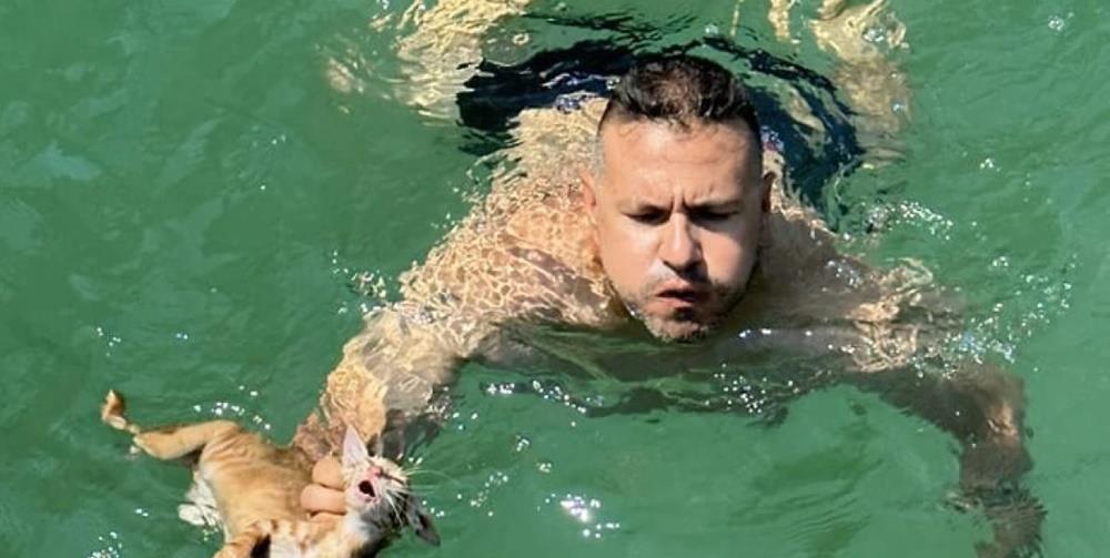 Όπως φαίνεται στο βίντεο που αναρτήθηκε στο twitter, όταν ο άνδρας είδε το γατάκι στη θάλασσα στην περιοχή της Φανερωμένης, δεν δίστασε ούτε λεπτό και βούτηξε στο νερό για να το σώσει.