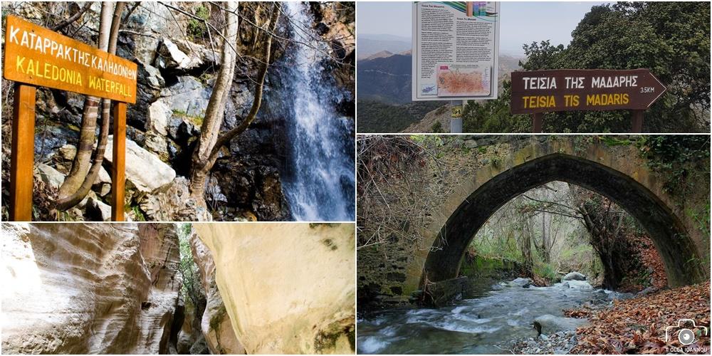 Ένα ίσως από τα πιο γνωστά μονοπάτια του νησιού, είναι το γραμμικό μονοπάτι «Καληδόνια», που έχει ως αφετηρία την Πλατεία Τροόδους. Το μονοπάτι έχει διάρκεια τρείς ώρες και βαθμό δυσκολίας τρία. Αξιοσημείωτο και πόλος έλξης για πολλούς που θα επιλέξουν τη διαδρομή είναι ο καταρράκτης των Καληδονιών.