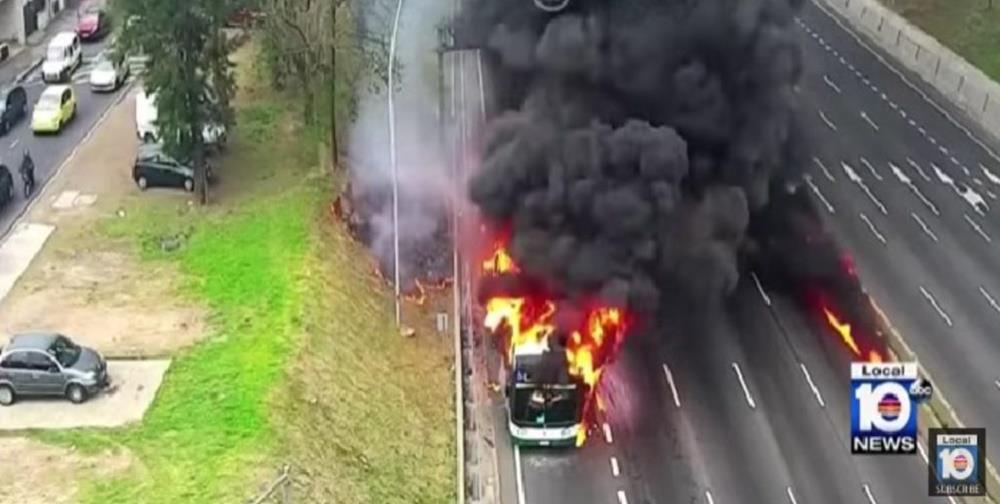 Σκηνές πανικού εκτυλίχθηκαν σε αυτοκινητόδρομο στο Μπουένος Άιρες της Αργεντινής όταν εντελώς ξαφνικά ένα λεωφορείο τυλίχθηκε στις φλόγες.