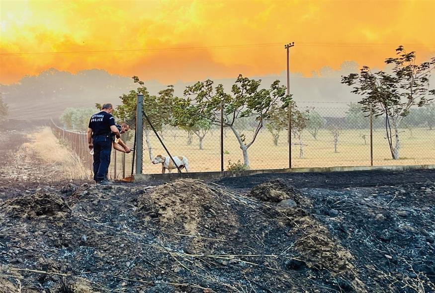 Η στιγμή που αστυνομικοί σώζουν σκύλο από τις φλόγες-Ήταν εγκλωβισμένο σε περιφραγμένο οικόπεδο