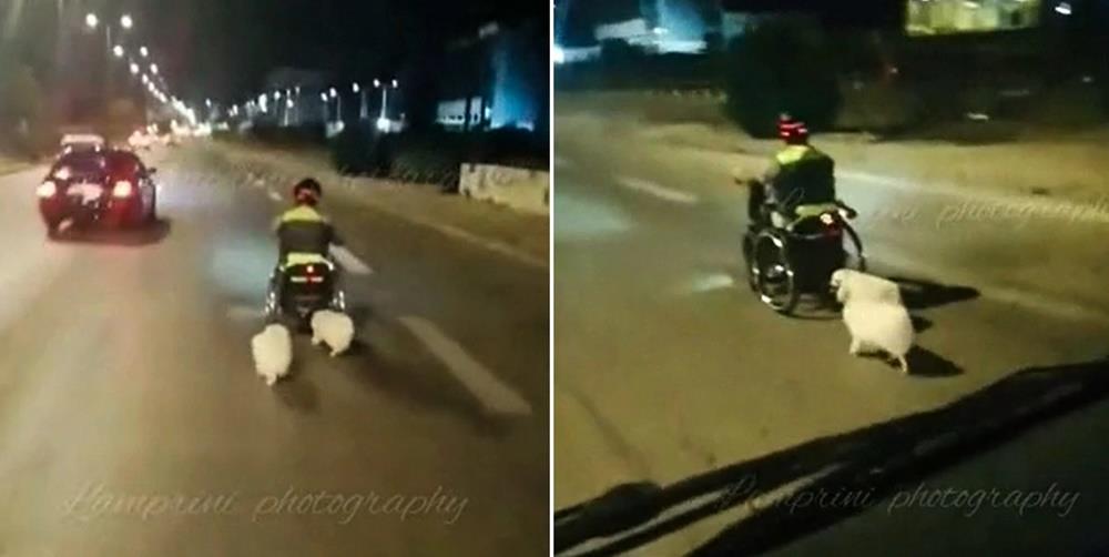 «Προσεχώς και σε διαφορετικές συνθήκες σκόπευα να γράψω ένα αφιέρωμα σχετικά με τον άνθρωπο που κυκλοφορεί με αμαξίδιο μαζί με τα 2 Σπιτς σκυλάκια του... Εθεάθη την Τετάρτη στη Γλυφάδα και έλαβα το βίντεο που τράβηξε φίλος.