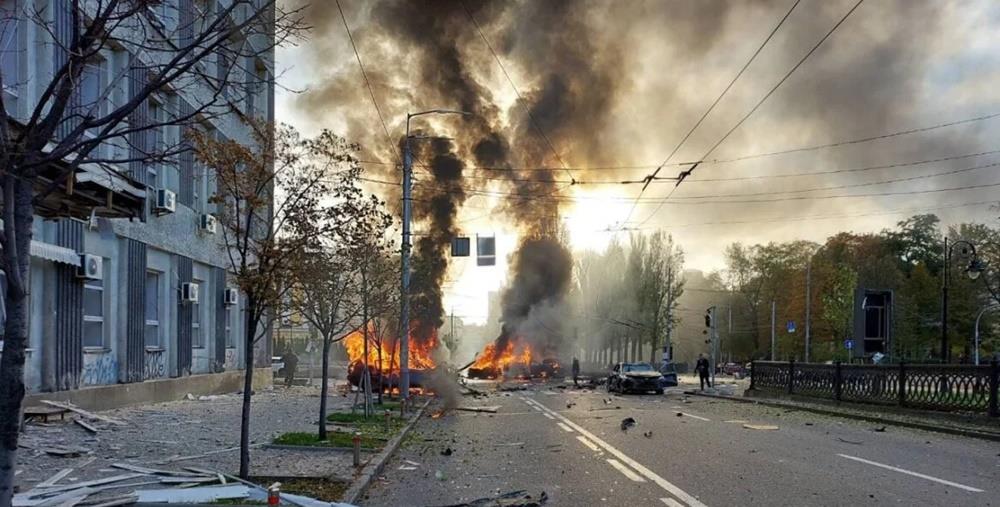 Από την επίθεση εκδηλώθηκε πυρκαγιά κοντά σε πάρκο, ενώ δεν υπάρχουν πληροφορίες για θύματα, σύμφωνα με τον δήμαρχο της ουκρανικής πρωτεύουσας.