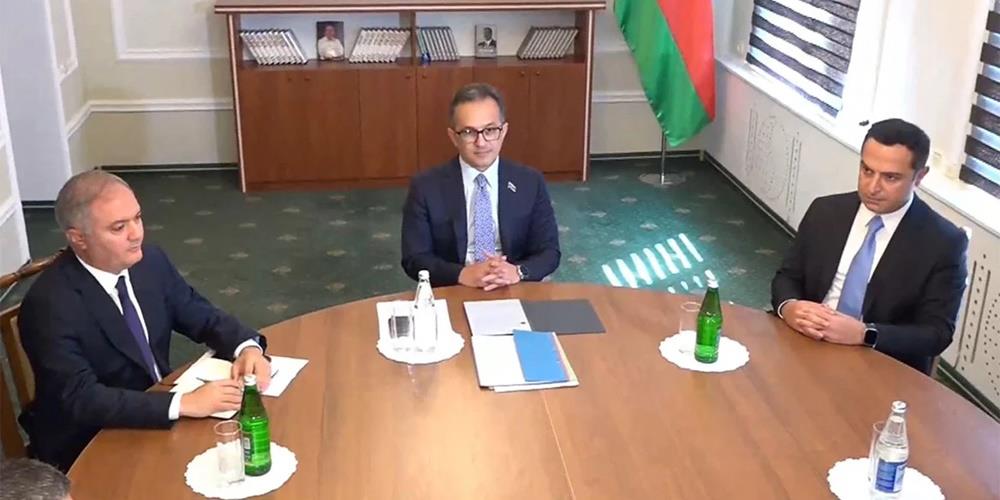 Σε πλάνα που μεταδόθηκαν λίγο αργότερα, έξι άνδρες με πολιτικά ρούχα βρίσκονται γύρω από ένα τραπέζι για να διαπραγματευθούν. Το Γαλλικό Πρακτορείο επισημαίνει μεταξύ αυτών έναν αντιπρόσωπο του Ναγκόρνο-Καραμπάχ, τον Νταβίντ Μελκουμιάν.