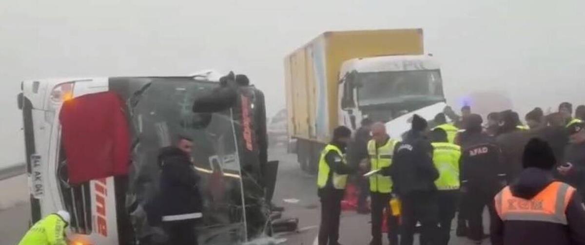 Το τραγικό δυστύχημα συνέβη το πρωί της Τρίτης 2/1. Όπως μεταδίδει το CNN Turk, το αναποδογυρισμένο λεωφορείο χτυπήθηκε από πίσω από φορτηγό που κινείτο προς την ίδια κατεύθυνση.