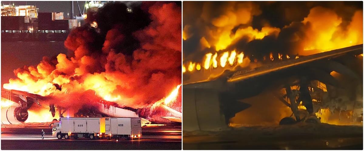 Πλάνα που μετέδωσε η κρατική τηλεόραση ΝΗΚ δείχνουν το αεροσκάφος να έχει τυλιχτεί στις φλόγες ενώ είναι καθηλωμένο στον διάδρομο προσγείωσης-απογείωσης του αεροδρομίου και επιβάτες του να απομακρύνονται από αυτό χρησιμοποιώντας την φουσκωτή τσουλήθρα εγκατάλειψης αεροσκάφους. Επίσης πυροσβέστες φαίνονται να βρίσκονται επί τόπου και να προσπαθούν να σβήσουν τη φωτιά. Το αεροσκάφος καταστράφηκε ολοσχερώς.