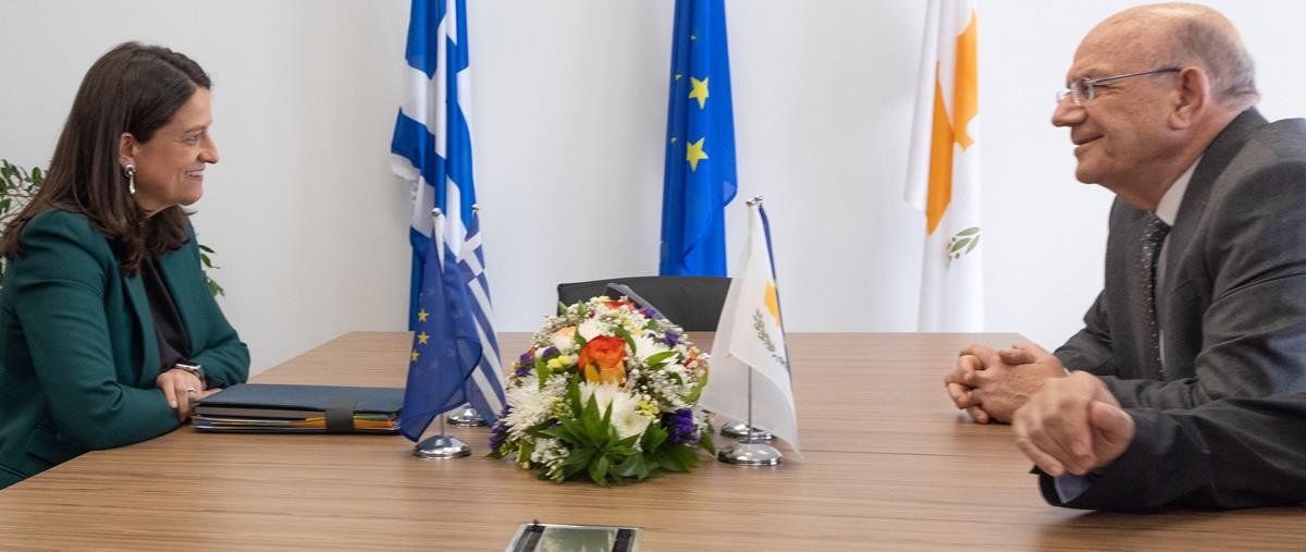 Απόψεις για τις διμερείς σχέσεις μεταξύ Κύπρου και Ελλάδας και τους τρόπους περαιτέρω σύσφιξης τους, αντήλλαξαν την Παρασκευή ο Υπουργός Οικονομικών Μάκης Κεραυνός με την Υπουργό Εσωτερικών της Ελλάδας, Νίκη Κεραμέως, η οποία πραγματοποιεί επίσκεψη στην Κύπρο.