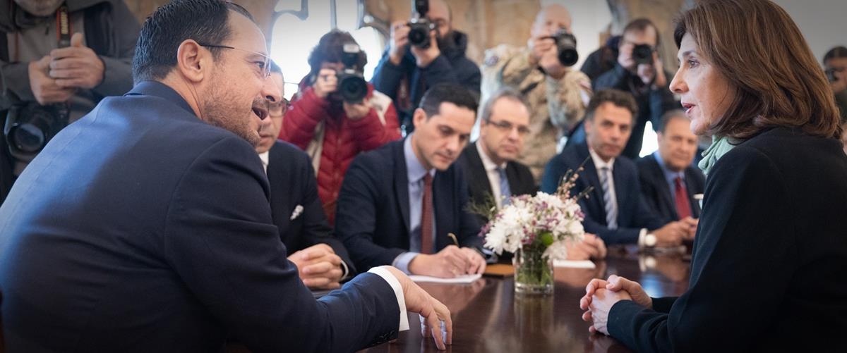 Θετική εντύπωση, στη Λευκωσία, προκάλεσε η πρώτη επαφή του Προέδρου της Δημοκρατίας, με την νέα προσωπική απεσταλμένη του Αντόνιο Γκουτέρες για το Κυπριακό, Μαρία Άνγχελα Ολγκίν Κουεγιάρ, η οποία πραγματοποιήθηκε το πρωί της Τρίτης στο Προεδρικό Μέγαρο. Ο Πρόεδρος της Δημοκρατίας επανέλαβε για ακόμη μια φορά την ετοιμότητα του για επανέναρξη των συνομιλιών από το σημείο που έχουν διακοπεί, σύμφωνα και με τα ψηφίσματα του Συμβουλίου Ασφαλείας, στη βάση διζωνικής δικοινοτικής ομοσπονδίας.