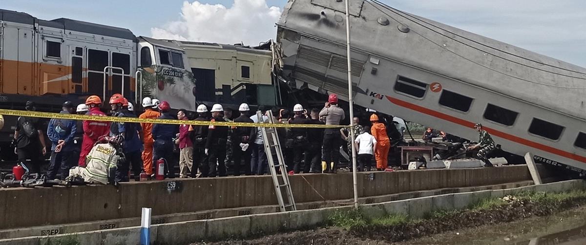 Two trains have collided on Indonesia’s main island of Java, causing several carriages to buckle and overturn and killing at least three people. Officials said a train traveling from Surabaya, the capital of East Java province, hit a commuter train heading from a station in West… pic.twitter.com/j5UL81I5JO