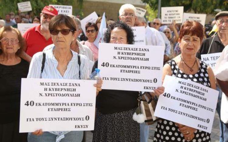 Οι συνταξιούχοι διαδήλωσαν την Πέμπτη για τα αιτήματα τους έξω από το Υπουργείο Οικονομικών, όπου ενέκριναν υπόμνημα, το οποίο θα διαβιβάσουν και θα επιδώσουν στον Πρόεδρο της Δημοκρατίας Νίκο Χριστοδουλίδη ζητώντας συνάντηση, για συζήτηση των προβλημάτων που αντιμετωπίζουν δήλωσε στο ΚΥΠΕ ο ΓΓ της Ένωσης Κυπρίων Συνταξιούχων(ΕΚΥΣΥ) μετά την εκδήλωση στο Υπουργείο Οικονομικών.