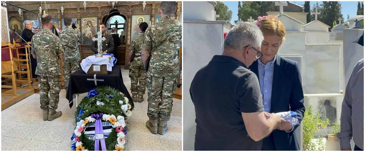 Ο Πρόεδρος της Δημοκρατίας, συνέχισε η κα. Αριστοτέλους «παραμένει αταλάντευτα προσηλωμένος στην εξεύρεση λύσης και την επίτευξη της ειρήνης. Παρά το πέρασμα του χρόνου και τις δυσκολίες που συναντούμε, δεσμευόμαστε να συνεχίζουμε ακατάπαυστα και με συνέπεια να αναζητούμε την αλήθεια για τους αγνοούμενους μας και να προσφέρουμε στους συγγενείς τους την απαραίτητη δικαίωση. Με δύναμη και επιμονή θα συνεχίσουμε να εργαζόμαστε ακούραστα, για την ειρηνική συνύπαρξη, την αλληλεγγύη και την επανένωση της πατρίδας μας. Όσος χρόνος κι αν περάσει. Όσο κι αν χρειάζεται να αγωνιστούμε προς τιμήν σου και όλων των πεσόντων και αγνοουμένων μας. Αγαπημένε μας Κώστα, ας είναι ελαφρύ το χώμα που θα σε σκεπάζει. Σήμερα δεν σε αποχαιρετάμε μόνο, σε καλωσορίζουμε πίσω σε μας, στους ανθρώπους που σε αγαπούν».