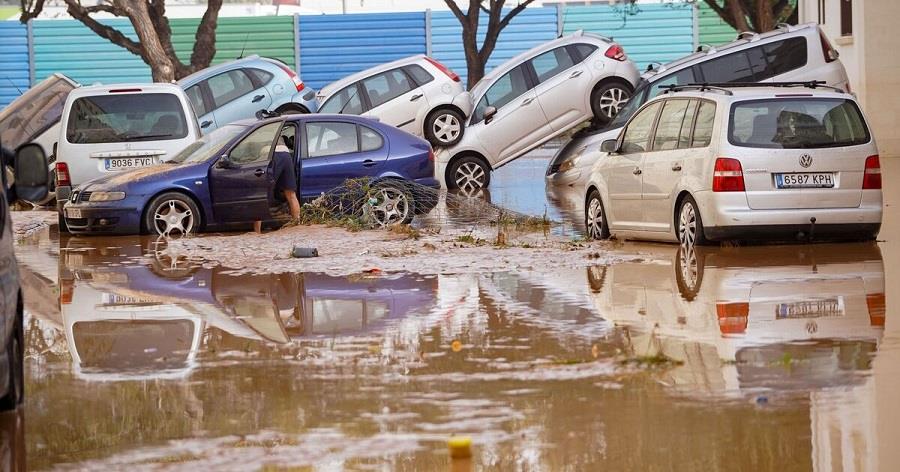 Στο Αλφαφάρ, προάστιο της Βαλένθια, της τρίτης μεγαλύτερης πόλης της Ισπανίας, διασώστες σκαρφάλωναν πάνω από τα αυτοκίνητα που είχαν στοιβαχτεί στους στενούς δρόμους ενώ οι κάτοικοι, που έσερναν καρότσια σούπερ μάρκετ μέσα στις λάσπες, περνούσαν δίπλα από ένα σκάφος που παρασύρθηκε από τα νερά και κατέληξε σε ένα σταυροδρόμι.