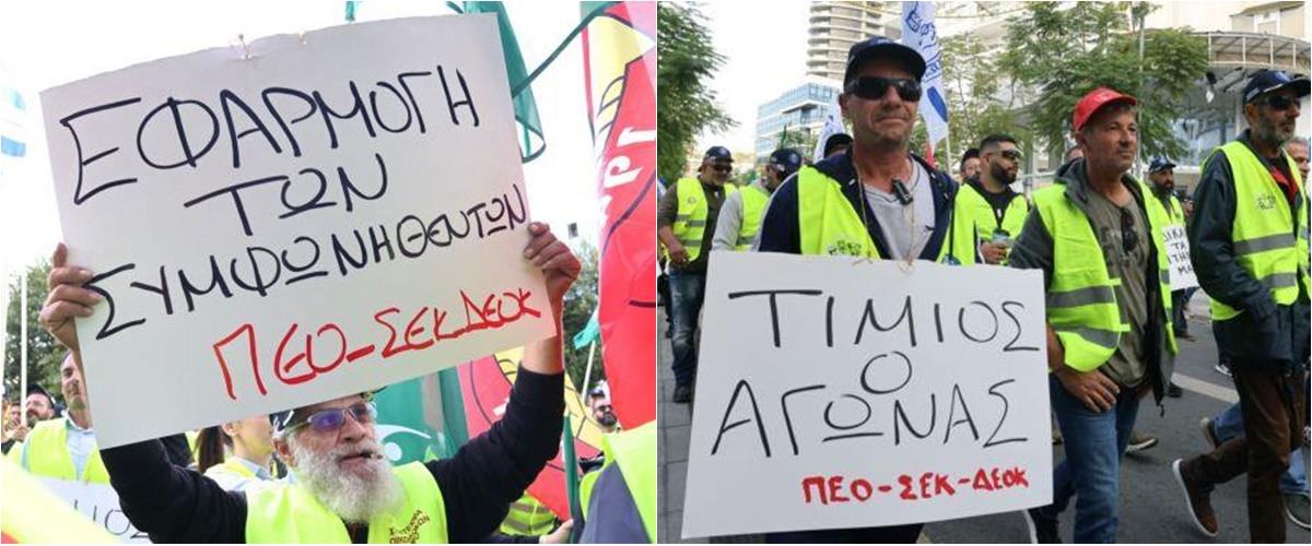 Οι απεργοί, οι οποίοι απέρριψαν σε γενική συνέλευση στη Λεμεσό την μεσολαβητική πρόταση του Υπουργού χθες, μετέφεραν στη Λευκωσία τον αγώνα τους και πορεύθηκαν το πρωί από την Πλατεία Ελευθερίας στο Υπουργείο. Οι επικεφαλής της ΠΕΟ, της ΣΕΚ και της ΔΕΟΚ στον οικοδομικό κλάδο και εκπρόσωποι των απεργών από όλες τις πόλεις συναντήθηκαν με τον Υπουργό στο γραφείο του και επέδωσαν ψήφισμα.