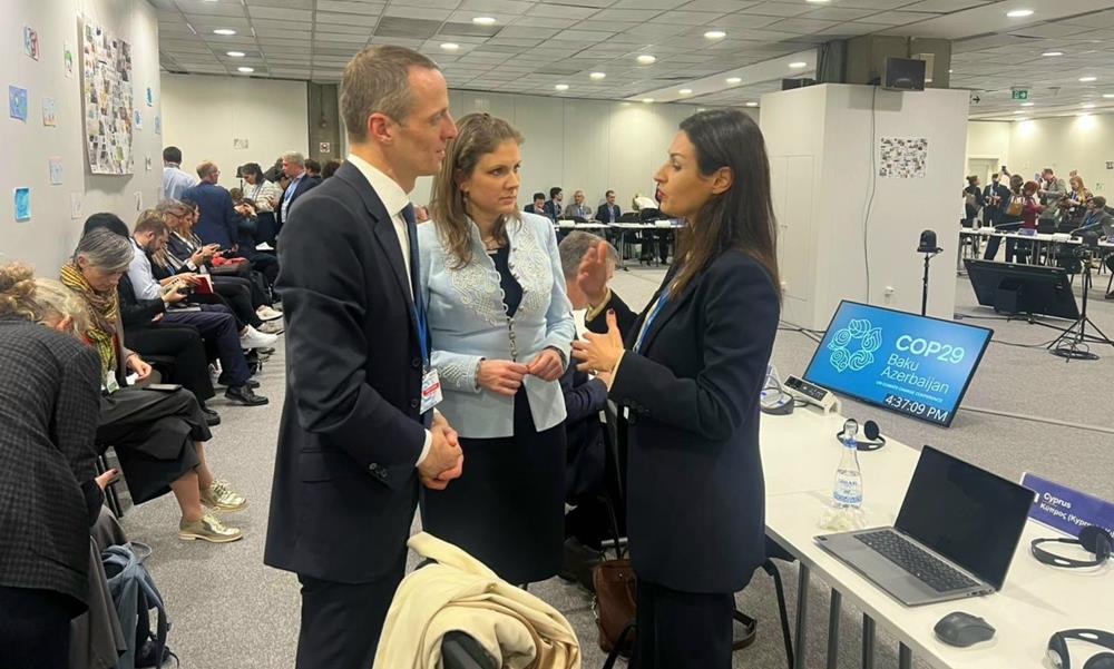 Τη δέσμευση της Κύπρου για την εφαρμογή αποφασιστικών δράσεων ενάντια στην κλιματική κρίση επαναβεβαίωσε η Υπουργός Γεωργίας, Αγροτικής Ανάπτυξης και Περιβάλλοντος, Μαρία Παναγιώτου, κατά τη συμμετοχή της στις εργασίες της 29ης Διάσκεψης των Συμβαλλόμενων Μερών της Σύμβασης-Πλαίσιο των Ηνωμένων Εθνών για την Κλιματική Αλλαγή (COP29) στο Μπακού του Αζερμπαϊτζάν.