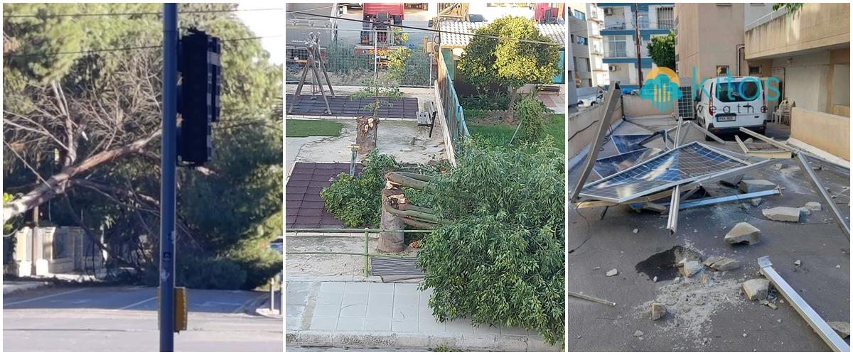 Συγκεκριμένα, όπως φαίνεται και από φωτογραφίες που δημοσιεύτηκαν στα μέσα κοινωνικής δικτύωσης, λόγω των σφοδρών ανέμων που πνέουν σε όλη την Κύπρο, έχουν αποκοπεί δέντρα, ενώ έπεσαν και φωτοβολταϊκά από στέγες. Πέραν τούτου, φαίνεται ότι έπεσε και ο χριστουγεννιάτικος διάκοσμος στο κέντρο της Λευκωσίας.