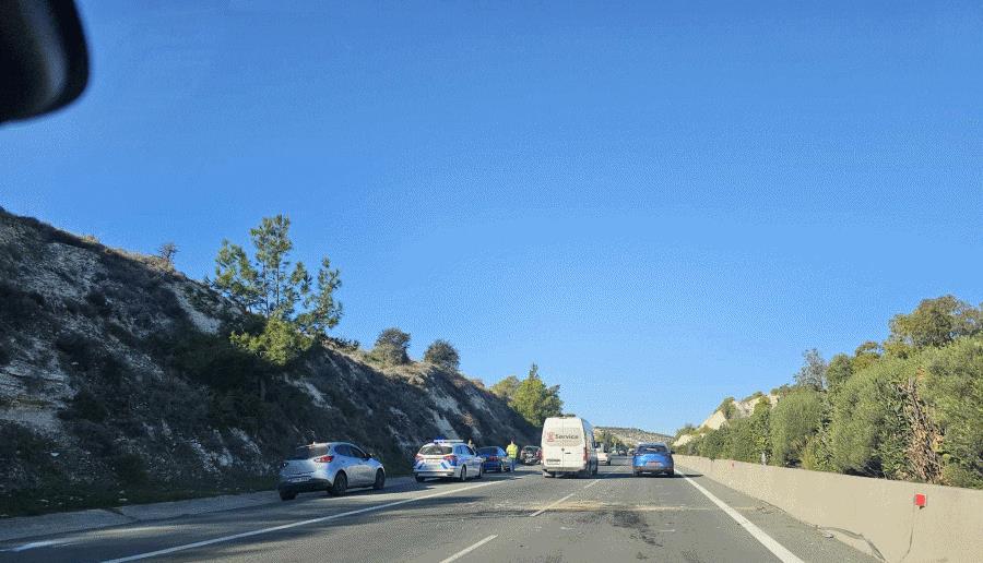 Η τροχαία κίνηση διοχετεύεται μέσω της λωρίδας ασφαλείας, ενώ η Αστυνομία συστήνει προσοχή στους διερχόμενους οδηγούς.
