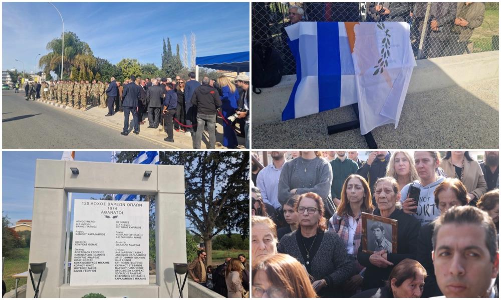 Ως Πολιτεία και ως Κοινωνία οφείλουμε με πράξεις να σταθούμε απέναντι σε όλους τους ήρωες, πεσόντες, αιχμαλώτους, τραυματίες και συγγενείς των αγνοουμένων και τους διαβεβαιώνουμε ότι θα πράξουμε ό,τι μπορούμε για να απελευθερώσουμε τη χώρα μας, ανέφερε ο Πρόεδρος της Δημοκρατίας Νίκος Χριστοδουλίδης, στον χαιρετισμό του κατά τα αποκαλυπτήρια του Μνημείου Τιμής και Ανδρείας των ηρώων και αγνοουμένων του 120ού Λόχου Βαρέων Όπλων 1974, που πραγματοποιήθηκαν την Κυριακή στην Κάτω Λακατάμεια.