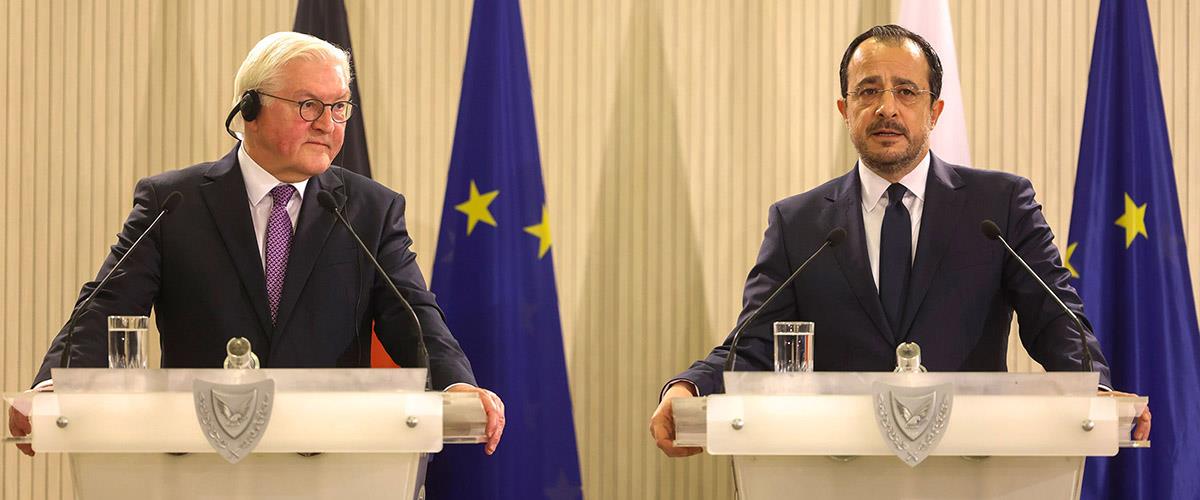 Ο Γερμανός Πρόεδρος μιλούσε μέσω διερμηνέα σε κοινή διάσκεψη Τύπου με τον Πρόεδρο της Δημοκρατίας Νίκο Χριστοδουλίδη, στο Προεδρικό Μέγαρο.