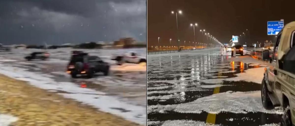 Εν τω μεταξύ, ακόμη και πριν από την αυγή, τμήματα του Άμπου Ντάμπι καλύφθηκαν από χαλάζι.
