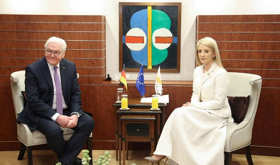 Σύμφωνα με ανακοίνωση της Βουλής των Αντιπροσώπων, κατά την κατ' ιδίαν συνάντησή τους, η Πρόεδρος της Βουλής ανέφερε στον Γερμανό Πρόεδρο ότι η επίσκεψή του δίνει ισχυρό μήνυμα για το ενδιαφέρον και τη στήριξη της Γερμανίας προς την Κύπρο σε μια κρίσιμη για τη χώρα μας συγκυρία, μετά από πενήντα χρόνια συνεχιζόμενης κατοχής.