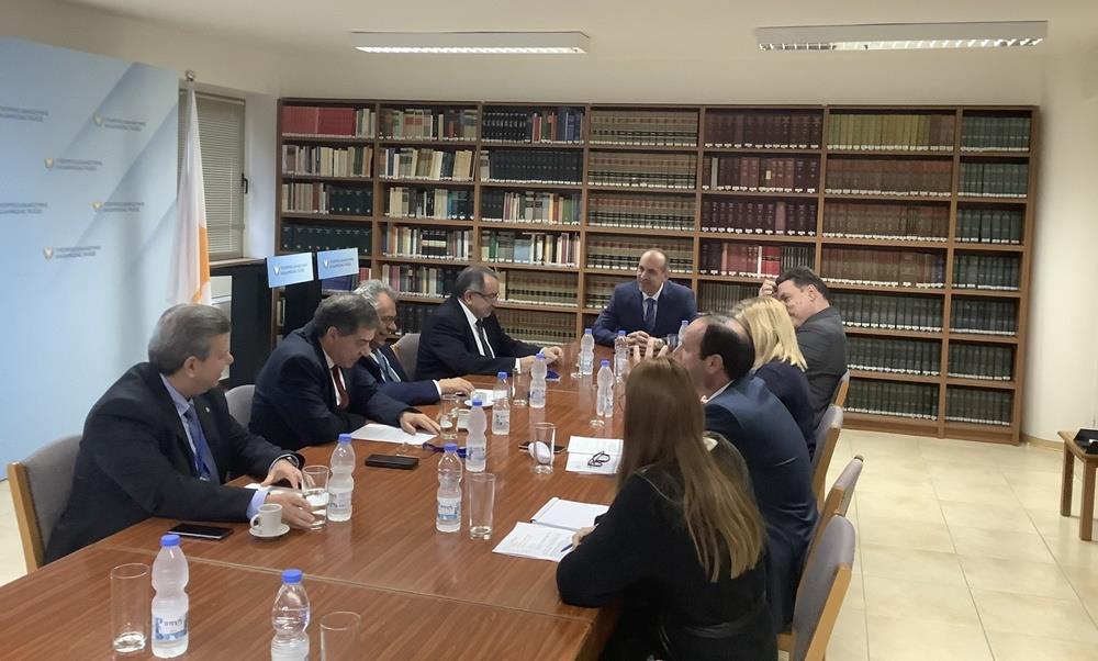 Διάφορα θέματα που άπτονται της δικαιοδοσίας του Υπουργείου Δικαιοσύνης και απασχολούν την εμποροβιομηχανική κοινότητα, καθώς και το θέμα της μεταρρύθμισης του τομέα της Δικαιοσύνης, ήταν στο επίκεντρο συνάντησης του Υπουργού Δικαιοσύνης και Δημοσίας Τάξεως Μάριου Χαρτσιώτη με τον Πρόεδρο του Διοικητικού Συμβουλίου του Κυπριακού Εμπορικού και Βιομηχανικού Επιμελητηρίου (ΚΕΒΕ) Σταύρο Σταύρου και αντιπροσωπείας της Εκτελεστικής Επιτροπής.