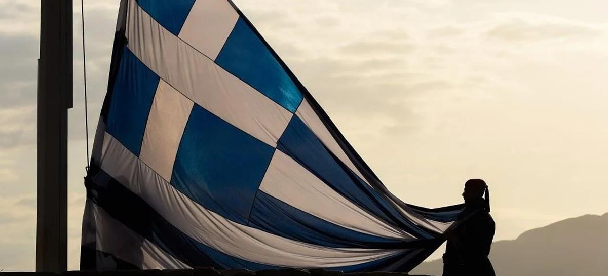 Δέος στην επαρση της σημαίας νωρίτερα σήμερα το πρωί στον ιερό βράχο της Ακρόπολης, ανήμερα της 25ης Μαρτίου.