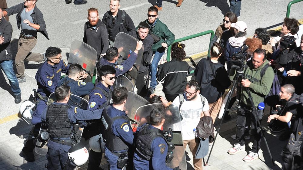 Μάλιστα, κάποια στιγμή οι διαδηλωτές πιάστηκαν στα χέρια με τους αστυνομικούς.