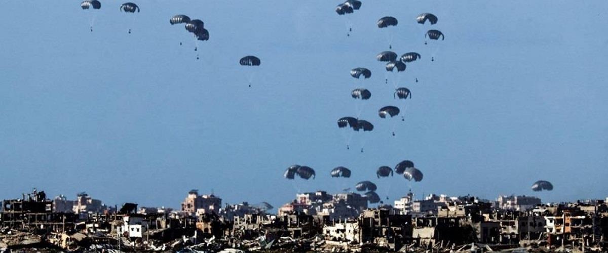 Οι εκκλήσεις προς το Ισραήλ για να επιτρέψει τη διέλευση περισσότερης ανθρωπιστικής βοήθειας έχουν πληθύνει τις τελευταίες ημέρες, ενώ έρχονται αναφορές για θανάτους παιδιών από ασιτία και προειδοποιήσεις από τον ΟΗΕ ότι «ο λιμός είναι σχεδόν αναπόφευκτος». Στην προσπάθεια να φτάσει τουλάχιστον φαγητό σε αυτούς που το χρειάζονται περισσότερο, από το περασμένο Σαββατοκύριακο στρατιωτικά αεροσκάφη των ΗΠΑ, της Ιορδανίας, της Γαλλίας, της Ολλανδίας, του Βελγίου και της Αιγύπτου προβαίνουν σε ρίψεις ανθρωπιστικής βοήθειας από αέρος. Ρίψεις, οι οποίες χαρακτηρίζονται από ανθρωπιστικές οργανώσεις ως «σύμβολο της αποτυχίας της χερσαίας ανθρωπιστικής επιχείρησης».