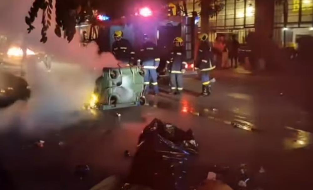 Κλήθηκε η Πυροσβεστική Υπηρεσία και κινήθηκε προς το σημείο, με τη συνοδεία δυνάμεων των ΜΑΤ. Τα άτομα που έβαλαν φωτιά στους κάδους είχαν αποχωρήσει.