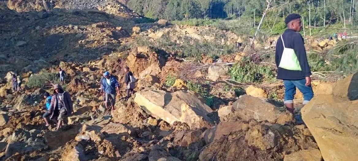 Η τραγωδία σημειώθηκε σε χωριό στην πλαγιά λόφου στην επαρχία Ένγκα, στο κεντρικό τμήμα του αρχιπελάγους, το οποίο σχεδόν εξαφνίστηκε όταν τμήμα του όρους Μουνγκάλο κατέρρευσε τη νύχτα της Πέμπτης προς Παρασκευή θάβοντας δεκάδες σπίτια την ώρα που οι κάτοικοι κοιμούνταν.