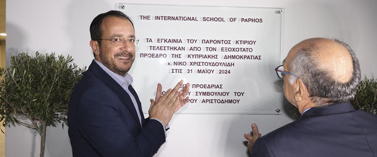 Ο πρόεδρος του ΔΣ του The International School of Paphos Θεόδωρος Αριστοδήμου  αναφέρθηκε στην ιστορία του σχολείου αλλά και τι αυτό περιλαμβάνει. Όπως ανέφερε η τελετή εγκαινίων της νέας πτέρυγας του The International School of Paphos, στο Sports Hall του σχολείου  αποτελεί ακόμα ένα ορόσημο στην ιστορία του σχολείου, το οποίο από το 1987 συνεχίζει την ανοδική του πορεία και πρωταγωνιστεί στην εκπαιδευτική ζωή της πόλης, παρέχοντας υψηλής ποιότητας εκπαίδευση.