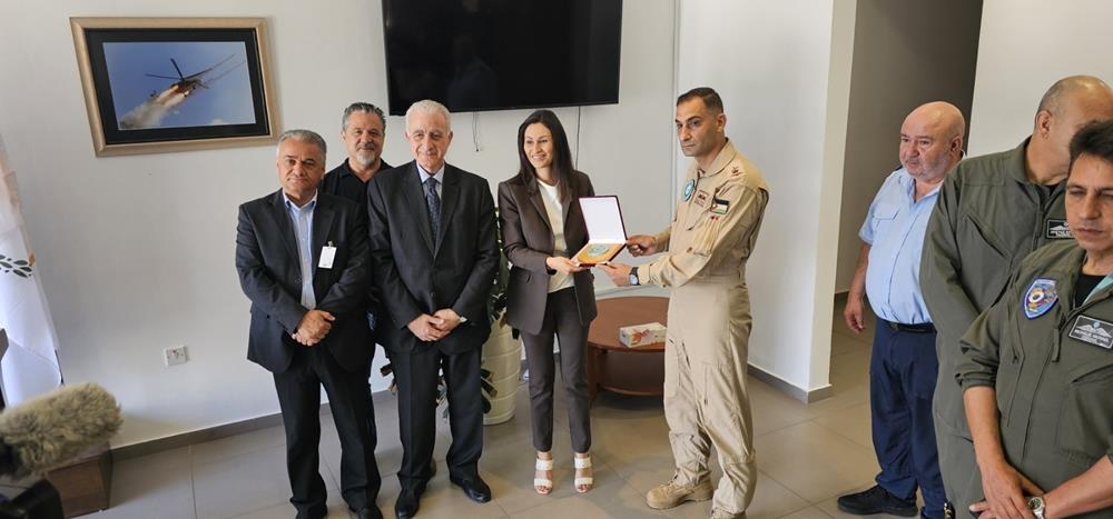 Στο πλαίσιο της εκδήλωσης υποδοχής, ο επικεφαλής της αντιπροσωπείας των Ιορδανών πρόσφερε στην Υπουργό τιμητική πλακέτα εκ μέρους της Αεροπορικής Πτέρυγας της Μονάδας Εναέριας Πυρόσβεσης της Ιορδανίας.