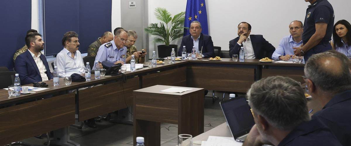 Στις δηλώσεις του ο Πρόεδρος Χριστοδουλίδης ανέφερε ότι ενημερώθηκε «από τον επικεφαλής της Πυροσβεστικής Υπηρεσίας και από τους τρεις Υπουργούς (Αμυνας, Δικαιοσύνης και Γεωργίας) που βρίσκονται εδώ. Ο Υπουργός Δικαιοσύνης είναι καθ΄οδόν προς την Πάφο μετά από σχετικές οδηγίες» είπε.