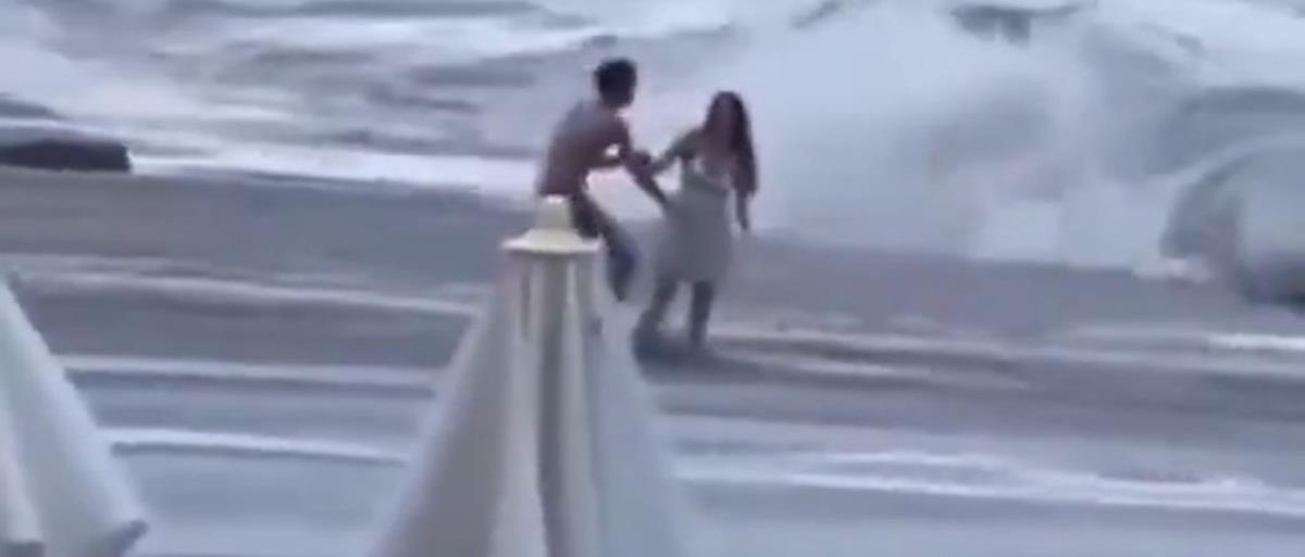 Ένα δεύτερο κύμα, όμως, κάλυψε τους δύο νέους με το αγόρι να βρίσκεται πιο έξω προς την παραλία, ενώ το κορίτσι παρασύρεται και χάνεται μέσα στο νερό.