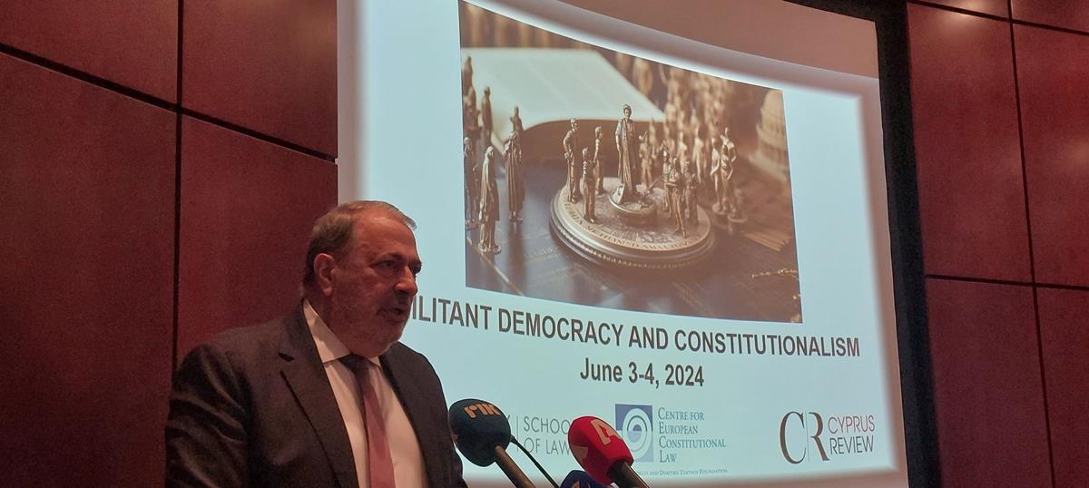 Ο Γενικός Εισαγγελέας προέβη σε δηλώσεις σε δημοσιογράφους μετά το πέρας του πρώτου μέρους του διεθνούς συνεδρίου με θέμα «Μαχητική δημοκρατία και συνταγματισμός: Οι διαδικαστικές πτυχές της δημοκρατίας επηρεάζουν την ουσία της;» που διεξάγεται στο Πανεπιστήμιο Λευκωσίας στη μνήμη του Αλέκου Μαρκίδη (1943-2020), πρώην Γενικού Εισαγγελέα της Κυπριακής Δημοκρατίας.
