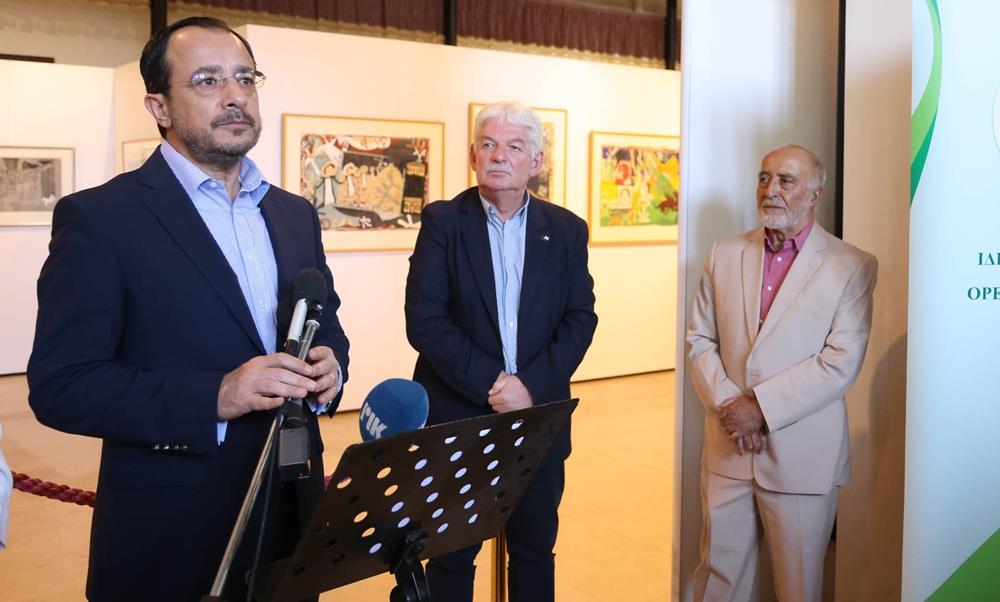 Από την πλευρά του, ο καλλιτέχνης ευχαρίστησε τον ΠτΔ για την τιμή να εγκαινιάσει την έκθεση του και του δώρισε το δίτομο βιβλίο του, που είναι γραμμένο στην κυπριακή διάλεκτο και περιλαμβάνει εικονογραφημένα τα έργα του.