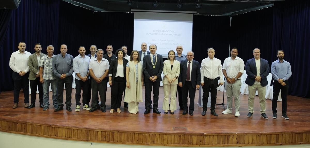 Ακόμα απονεμήθηκαν αναμνηστικά ενθυμήματα στα απερχόμενα μέλη του Δημοτικού Συμβουλίου και έγινε η παράδοση της Δημαρχίας από τον Δημοτικό Γραμματέα Δρ. Ματθαίο Αλαμπρίτη στον Δήμαρχο Αραδίππου Χριστόδουλο Πάρτου.