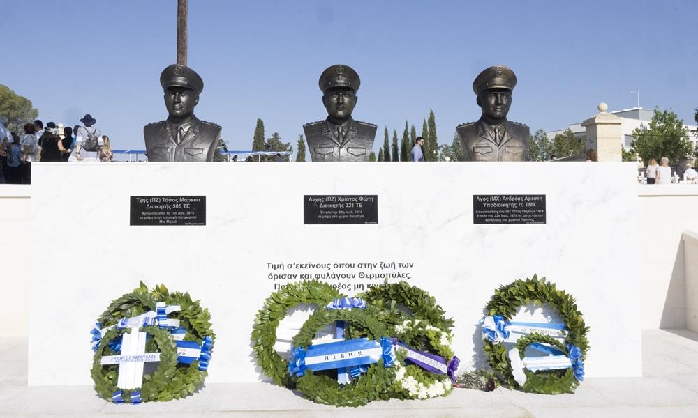 Ο Πρόεδρος της Δημοκρατίας κ. Νίκος Χριστοδουλίδης τέλεσε σήμερα το πρωί τα αποκαλυπτήρια των προτομών των ηρώων Χρήστου Φώτη Τάσου Μάρκου και Ανδρέα Αρέστη, στον χώρο του Τύμβου Μακεδονίτισσας.