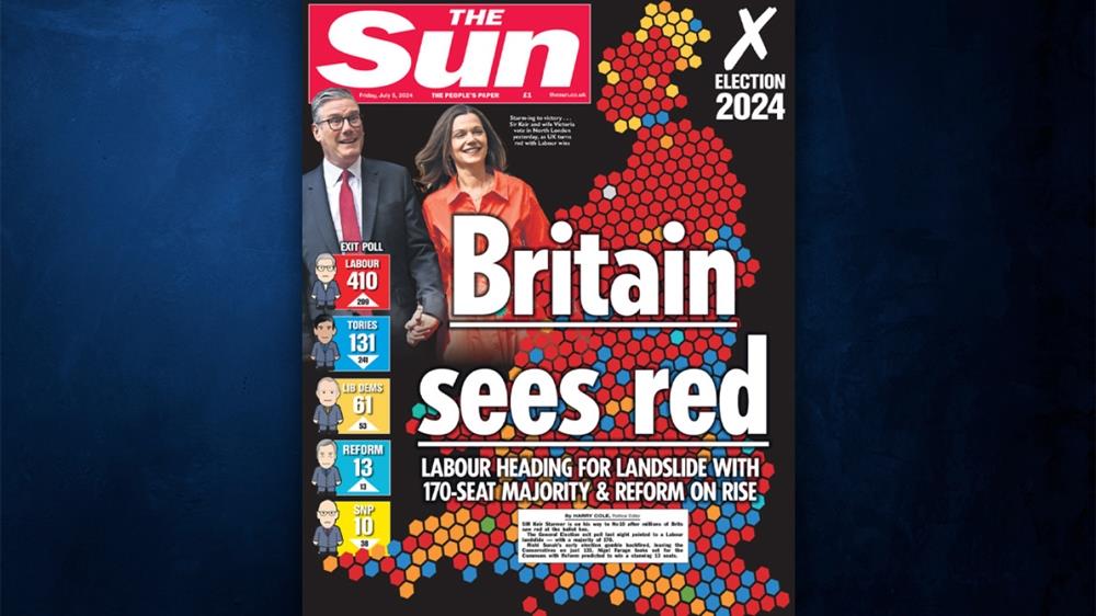 Τον πιο χαρακτηριστικό τίτλο πάντως διεκδικεί η Sun η οποία γράφει στο πρωτοσέλιδό της «Η Βρετανία έγινε κόκκινη», από το χρώμα των Εργατικών.