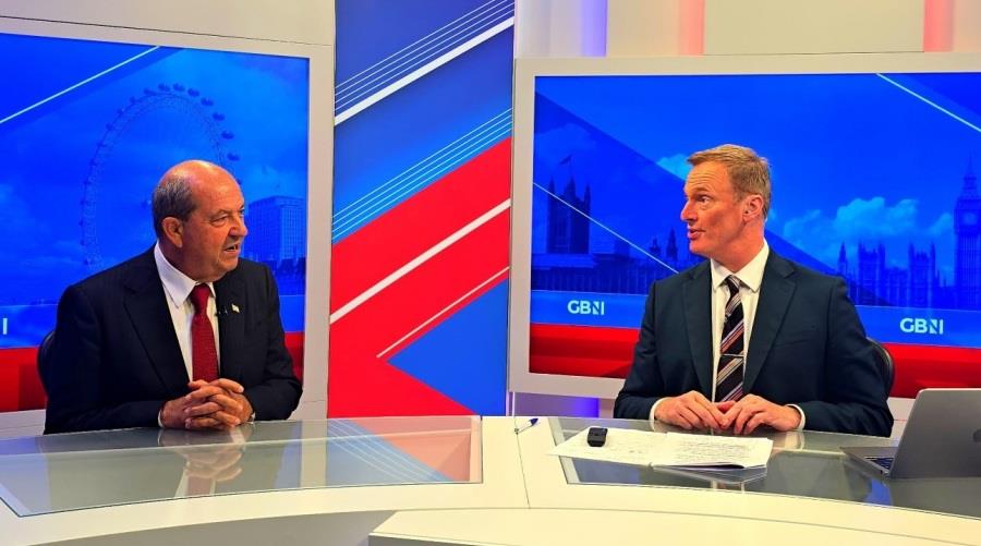 Σύμφωνα με την ιστοσελίδα του «Μπαϊράκ», ο Τ/κ ηγέτης ήταν φιλοξενούμενος σε ζωντανή εκπομπή του GB News με παρουσιαστή τον Martin Daubney, όπου ανέφερε πως βρίσκεται στο Λονδίνο για να συμμετάσχει σε διάφορες εκδηλώσεις που διοργανώνονται με την ευκαιρία της 50ης επετείου της «ειρηνευτικής επιχείρησης στην Κύπρο», όπως χαρακτήρισε την εισβολή, από την Τουρκία μετά το πραξικόπημα «της ελληνικής χούντας κατά του Συντάγματος της Κύπρου» .