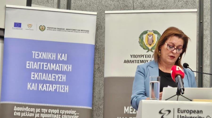 Η Τεχνική Εκπαίδευση δεν είναι μόνο μια εναλλακτική λύση, αλλά μια ισότιμη επιλογή που μπορεί να ανοίξει πόρτες σε μια επιτυχημένη καριέρα, αποτελώντας κλειδί για την οικονομική ευημερία της Κύπρου, είπε η Υπουργός Παιδείας, Αθλητισμού και Νεολαίας, Αθηνά Μιχαηλίδου, σε χαιρετισμό της στην Ημερίδα με τίτλο «Τεχνική και Επαγγελματική Εκπαίδευση και Κατάρτιση, διασύνδεση με την αγορά εργασίας, ένα μέλλον με προοπτικές επιτυχίας», η οποία πραγματοποιήθηκε το Σάββατο, στο Ευρωπαϊκό Πανεπιστήμιο.