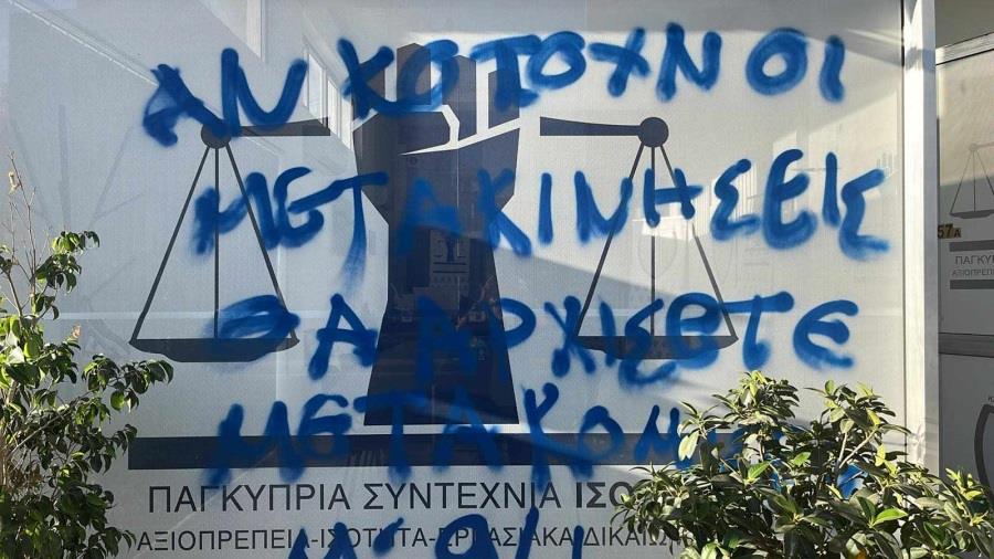 Βανδαλισμοί σημειώθηκαν χθες το βράδυ στα γραφεία της συντεχνίας Ισότητας στην περιοχή της Αγλαντζιάς στη Λευκωσία.