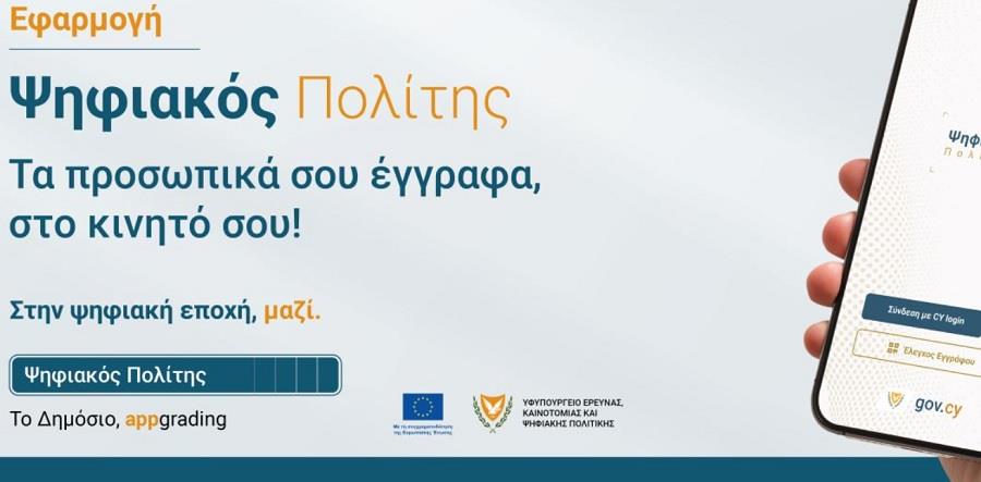 Σε ανακοίνωσή του, το αρμόδιο Υφυπουργείο ενημερώνει όλους τους οργανισμούς, εταιρείες και επαγγελματίες ότι η εφαρμογή «Ψηφιακός Πολίτης» αποτελεί την επίσημη εφαρμογή της Κυβέρνησης για κινητές συσκευές (mobile application) που επιτρέπει σε πολίτες της Δημοκρατίας, οι οποίοι είναι κάτοχοι λογαριασμού CY Login, να αποθηκεύουν στην κινητή τους συσκευή, ψηφιακά δημόσια έγγραφα των οποίων είναι κάτοχοι.