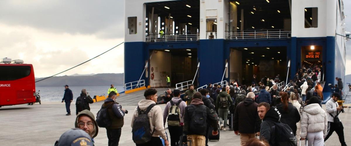 Νέα μαζική αποχώρηση από το νησί της Σαντορίνης σήμερα το μεσημέρι, καθώς εκατοντάδες ήταν αυτοί που επιβιβάστηκαν στο μεσημεριανό πλοίο.