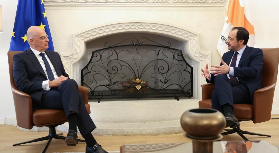 Ο Πρόεδρος της Δημοκρατίας κ. Νίκος Χριστοδουλίδης δέχθηκε σήμερα στο Προεδρικό Μέγαρο τον Υπουργό Εθνικής Άμυνας της Ελλάδας κ. Νίκο Δένδια, τον οποίο συνόδευε ο Υπουργός Άμυνας κ. Βασίλης Πάλμας.