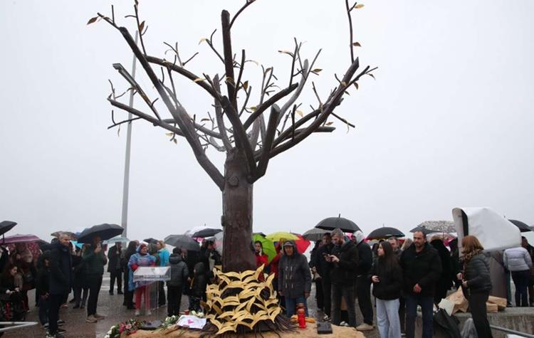 Μετά το «Δέντρο των Ψυχών», που αποκαλύφθηκε χθες Σάββατο στους Αθηναίους, σε αντίστοιχο κλίμα συγκίνησης πραγματοποιήθηκαν σήμερα το μεσημέρι σε χώρο πρασίνου στη Νέα Παραλία της Θεσσαλονίκης τα αποκαλυπτήρια του γλυπτού με τίτλο «Το δέντρο της Μνήμης», που είναι επίσης αφιερωμένο στα 57 θύματα των Τεμπών.